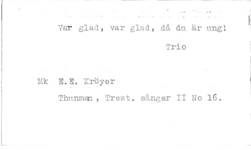 //// Var glad, var glad, då du är ung //// Trio //// E.E. Kröyer //// Thunmsn , Trest, sånger II No 16.