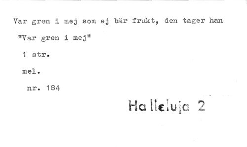 //// Var gren i mej som ej bär frukt, den tager han "Var gren i mej" //// 1 str. mel. nr. 184 //// 2 //// ä