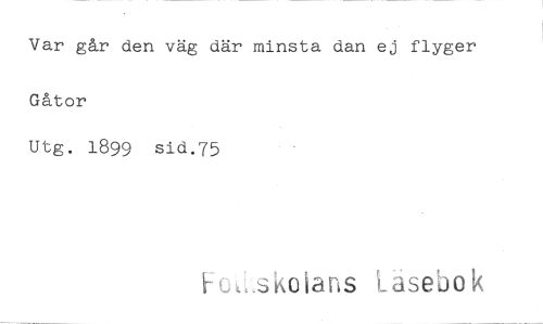 //// Var går den väg där minsta dan ej flyger Gåtor //// Utg. 1899 sid.75 //// Fo^skoians Läsebok