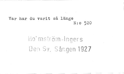 //// Var har du varit så länge //// N:o 520 //// ho' ms^öm-inoers Uei Sv. Sången 1927