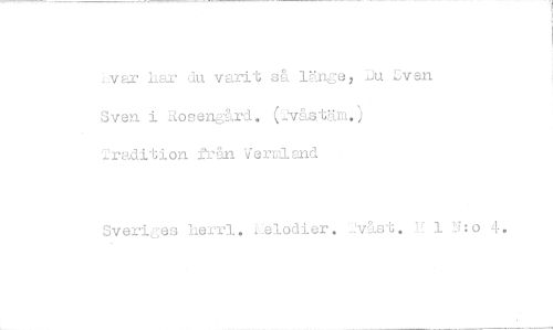 //// var har du varit så länge, Ju Svan Sven i Rosengård. (-Jvåstäm.) tradition från VerBland //// Sveriges herrl. i.elodier. -Jvåst. H 1