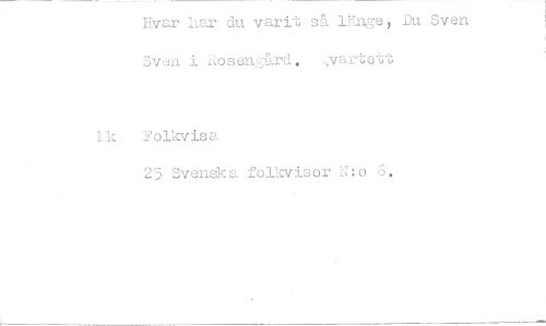 //// Hvar har du varit så länge, Du Sven Sven i Rosengård. ^.vartett //// Folkvisa