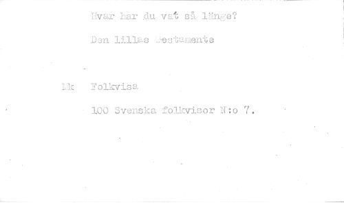 //// Hvar har du vat så länge? Den lillas testamente //// Folkvisa //// 100 Svenska folkvisor N:o 7.