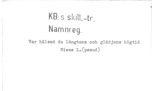//// KB:s skiH.-tr. Namnfeg. //// Var hälsad du längtans och glädjens högtid Nisse L.(pseud)