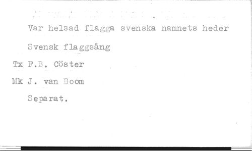 //// Var helsad flagga svenska namnets heder Svensk flaggsång Tx F.B, Cöster Mk J. van Boom Separat.