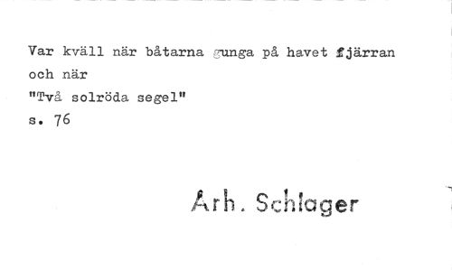 //// Var kväll när båtarna {?unga på havet fjärran och när //// "Två solröda segel" s. 76 //// Arh. Scn!ager