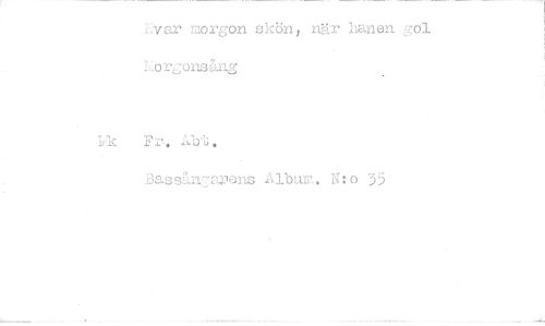 //// Rvar morgon skön, när hanen gol //// l..orgonsång //// -k Fr, Abt. //// Bassångapens Album, N:o 35