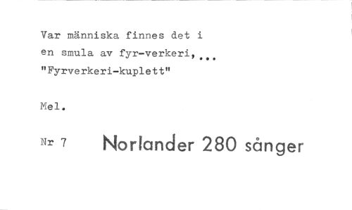 //// Tar människa finnes det i en smula av fyr-verkeri,... "Fyrverkeri-kuplett" //// Mel. //// Nr 7 Nortander 280 sånger