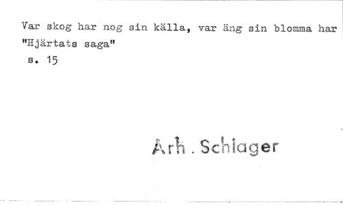 //// Var skog har nog sin källa, var äng sin blomma har "Hjärtats saga" s. 15 //// Åt4i. Schiager