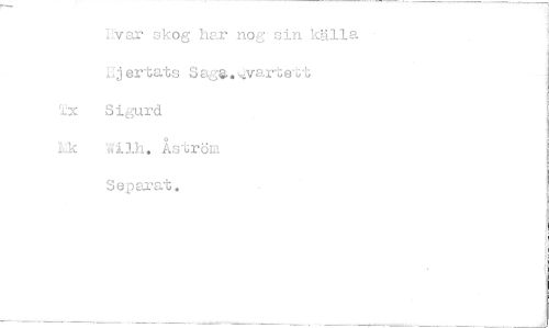 //// Kvar skog har nog sin käll //// Ej ertats Sagg.. Qvarte*ut //// Sigurd //// Wilh. Åström //// Separat.