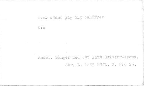 //// *,vsr stund jag dig behöfver D: o //// Andel. Sånger med ett lätt Guitarr-aaomp. //// -R.br. L. 1685 Häft. 2. 11: o 25.