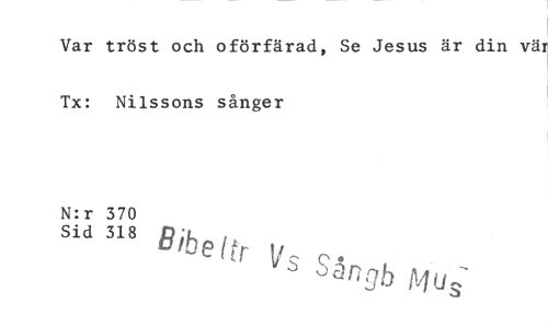 //// Var tröst och oförfärad, Se Jesus är din vät Tx: Nilssons sånger //// N:r 370 Sid 318