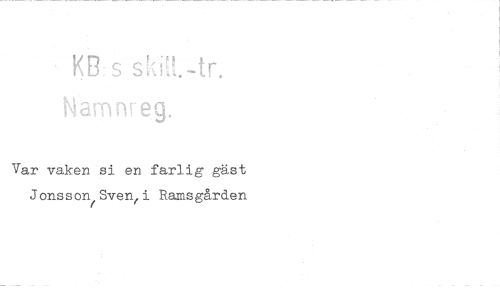 //// KB s sML-tr. ^amnreg. //// Var vaken si en farlig gäst Jonsson,Sven,i Ramsgården