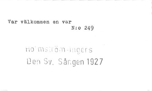 //// Var välkommen en var //// N:o 249 //// no ms<ro.rn -mgers //// Den Sv. Sången 1927