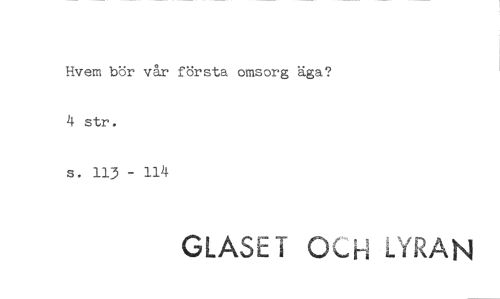 //// Hvem bör vår första omsorg äga? 4 str. //// s. 113 - 114 //// GLASET OCH