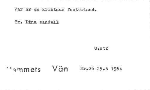 //// Var är de kristnas fosterland. //// Tx. Lina sandell //// 8.str //// 'immets Vän Nr.26 25.6 1964