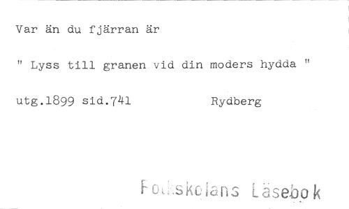//// Var än du fjärran är //// " Lyss till granen vid din moders hydda " utg.1899 sid.741 Rydberg //// Fo^skeians Läsebok