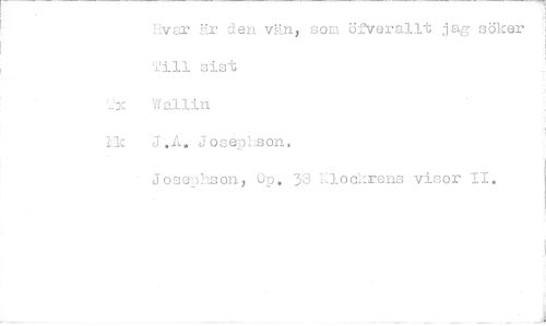 //// livar är den vän, som öfverallt jag söker ^'ill sist ..x W allin //// J. A. Jos ep hs on, //// Josephson, Op. 38 Klockrens visor II.