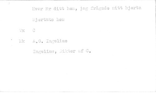 //// Hvar är ditt hen, jag frågade nått hjerta Hjertats hem Tx C //// Mc A.G. Ingelius //// Ingelius, Jikter af C.
