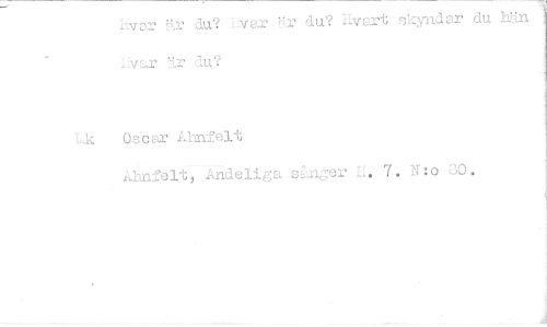 //// itvar ar du? -var är du? Rvsrt skyndar du hän //// iy&r 'ir du? //// i.k Oscar Almfelt //// Aimfelt, Andeliga sånger 11. 7. N:o BO. //// i