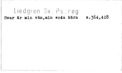 //// Uedgren Sv. Ps . reg //// Hwar år min vän,min enåa kåra 8.364^428