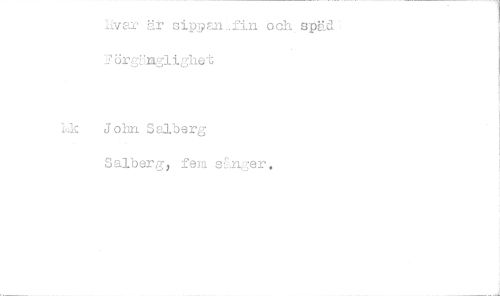 //// livar är sippan..fin och späd //// Förgämglighet //// .Ik John Salberg //// Salberg, fem s5.nger.