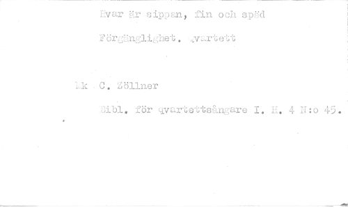 //// Kvar är sippan, fin och späd FörgHnglighet. .^v^rtett //// Lk C. Zöllner //// jibl. för qvartettsångare I. K. 4 IT:o 45.