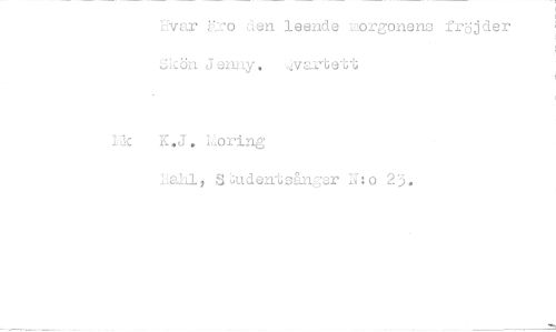 //// Evar äro den leende morgonens fröjder Skön Jenny, kvartett //// K.J. Lo ring //// Lalil, Studentsånger N:o 23.