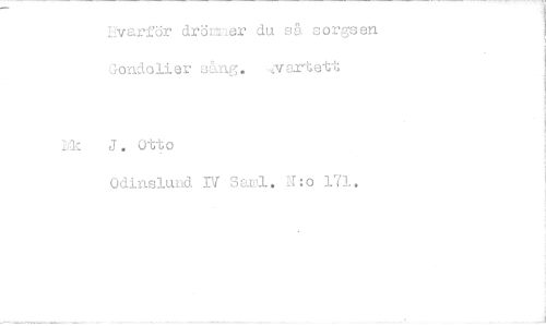 //// Kvarför drömner du så sorgsen //// Gonåolier sång. artett //// irl- J „ OttO //// Odinslund IV Sacl. N:o 171.