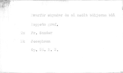 //// ^.varför skyndar du så nedåt böljorna blå Hoppets graf. //// Tx Fr. Ssiider //// I.k Josephson //// Op. 26. H. 2.