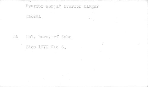 //// Evarför sörja? hvarför klaga? Cli.ors-1 //// el. harm. af Zalm Zion 1870 H:o 6.