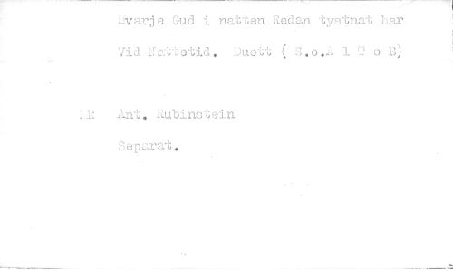//// Lvarje Gud i natten Redan tystnat har Vid Nattetid. Duett ( 3.o1 T o B) //// Ant. Rubinstein //// Separat.