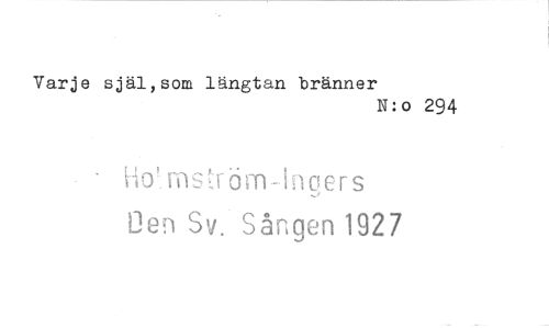 //// Varje själ,som längtan bränner //// N:o 294 //// Ho'mstr om-inge rs Den Sv. Sången 1927