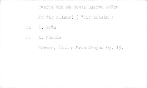 //// Fvarje vän må detta hjerta Åt dig allena! ( "Dir allei A. j-rHa. //// L. Noruan //// Normen, Atta snärre Såttger