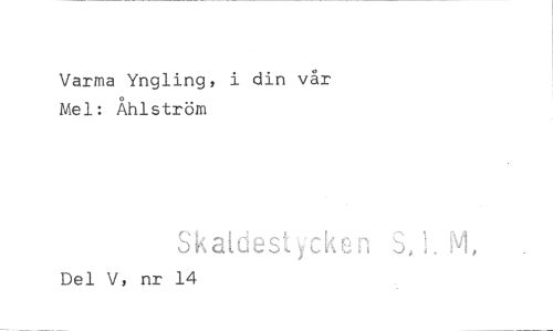 //// Varma Yngling, i din vår Mel: Åhlström //// Skatdestycken S,!. M, //// Del V, nr 14