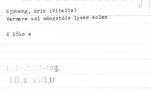 //// Sjöberg, Erik (Vitalis) //// Varna.re väl mångstäds lyser solen //// E l8L).o s //// L.\^-.r .1-reg, i(B:S skdLtr