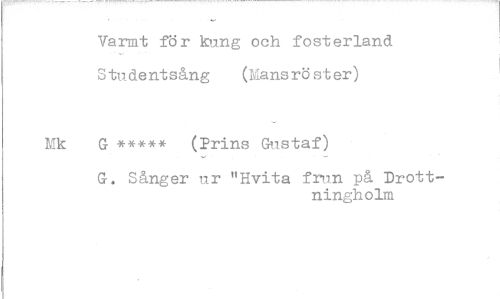 //// Varmt för kung och fosterland S tu de nt sång (Nans rö st er) //// G- *** (Prins Gustaf) //// G, Sånger ur "Hvita frun på Drottningholm