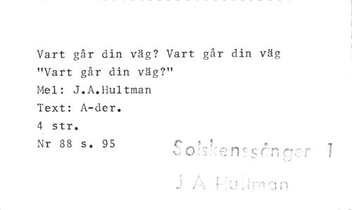 //// Vart går din väg? Vart går din väg "Vart går din väg?" //// Mel: J.A.Hultman Text: A-der. //// 4 str. //// Nr 88 s. 95 e ' ! //// ^ o;.s^en?