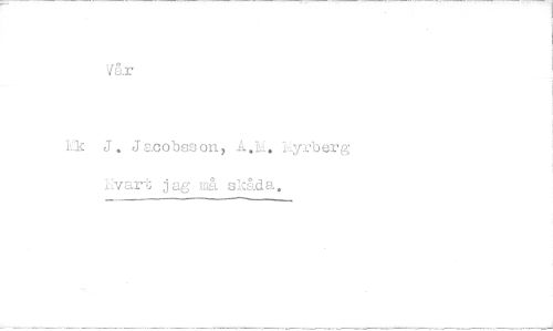 //// V&r //// Mc J. Jacobsson, A.M. l--.yrberg //// livar*!: jag' må skåda.