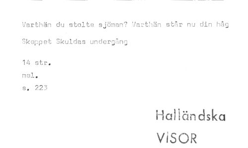 //// Varthän du stolte sjöman? Varthän står nu din håg Skeppet Bkuldas undergång //// 14 str. mel. s. 223 //// Hatiöndska //// ViSOR