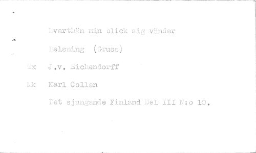 //// Lvarthän Kiin olick sig vänder elsning ( :--uss) //// J.v. ^ichendorff Karl Collsn //// Det sjungande Finland Del 111 N:o 10.