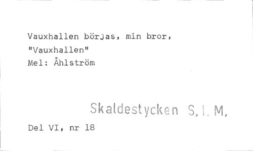 //// Vauxhallen börjas, min bror, "Vauxhallen" //// Mel: Åhlström //// Skatdestycken S, I. M, //// Del VI, nr 18