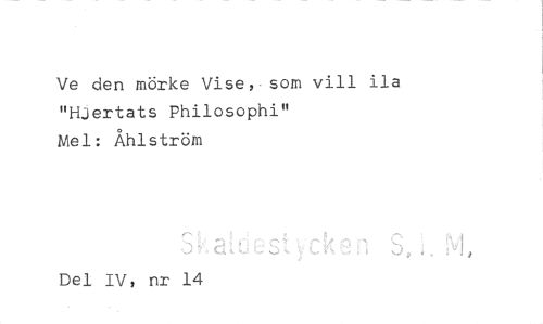 //// Ve den morke Vise, som vill ila "Hjertats Philosophi" //// Mel: Åhlström //// Del IV, nr 14