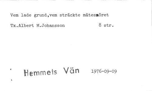 //// Vem lade grund,vem sträckte mätesaöret Tx.Albert M.Johansson 8 str. //// Hemmets Vän 1976-09-09