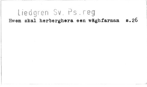 //// Liedgren Sv. Ps . reg //// Hwem skal herberghera een wäghfarnan s.26
