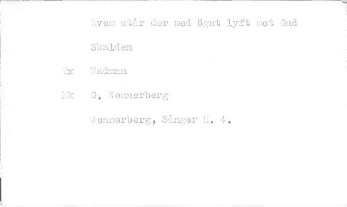 //// Lvem står der med ögat lyft mot Gud Skalden x '? adaan k G. Weimerberg //// .Jemierberg, Sånger II. 4.