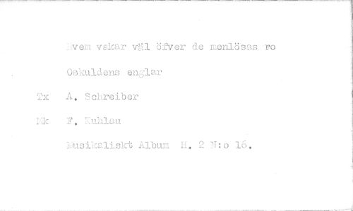 //// vein vakar väl öfver de menlösas: ro Oskuldens englar Tx A. Sckreiber I'k ?. kuM.au //// knsikaliskt Album H. 2 N:o 16.
