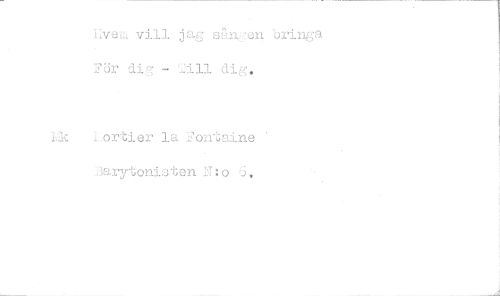 //// Hven vill jag sangen bringa För dig - 'Jill dig. //// l.jk . orti er la Fontaine 3s.rytonistenN:o 6.
