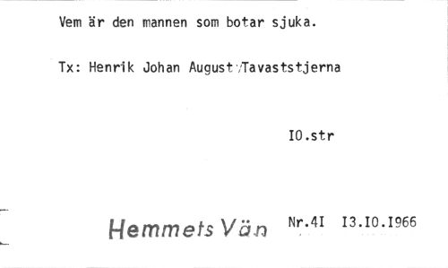 //// Vem är den mannen som botar sjuka. //// Tx: Henrik Johan August Tavaststjerna //// 10.str //// Hemmet //// 10.1966