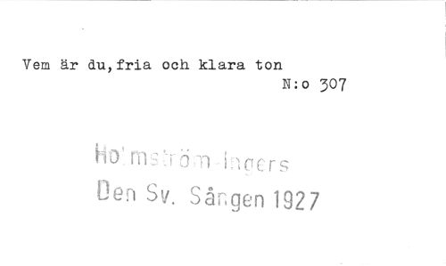 //// Vem är du,fria och klara ton //// N:o 307 //// ho'.rii?':iÖT) inpcrs Oen Sy. Sången 1927